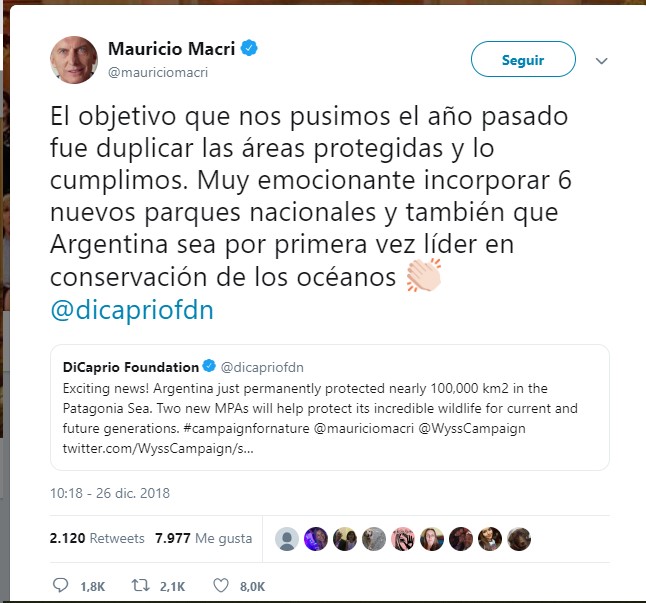 Macri retweeted DiCaprio’s Foundation tweet!